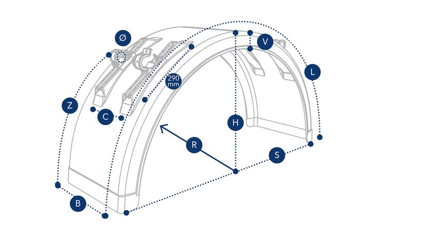 Kotflügel aus Polyethylen mit integrierten verstellbaren Stützen