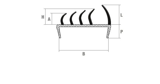 • PVC/Gummi-Dichtung für Kühlhäuser L=26 mm, B=65 mm, H=21 mm, P=18 mm, A=15 mm
