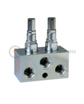 Relief valve twin, MTC, type VMDACSV02D with G ⅜" female thread. Used to limit the maximum pressure in two hydraulic systems connected to one tank.