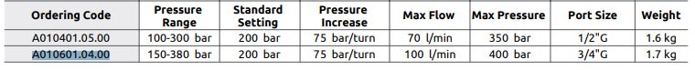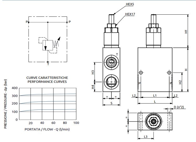 Relief valve in compact steel design of mushroom type, for overload protection.