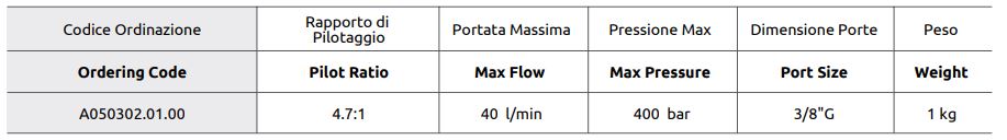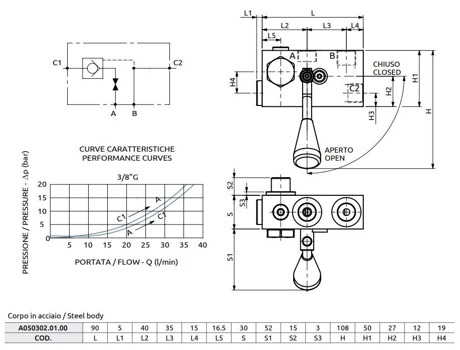 The valve allows free flow from A to C1. Suitable for holding the load, but not for controlling the lowering of the load.