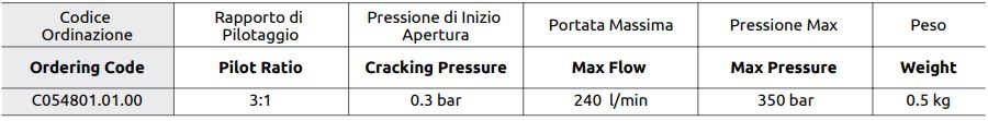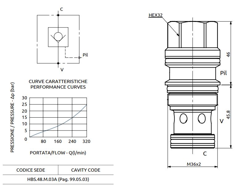 The valve allows free flow from V to C. Suitable for load holding, but not for lowering control.