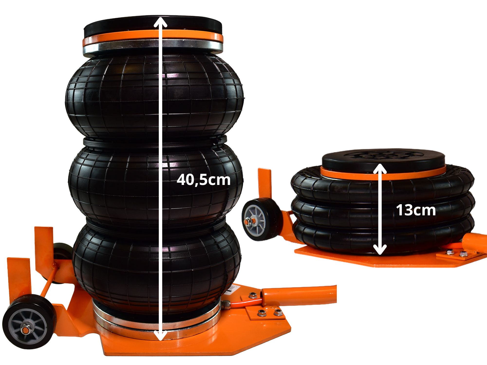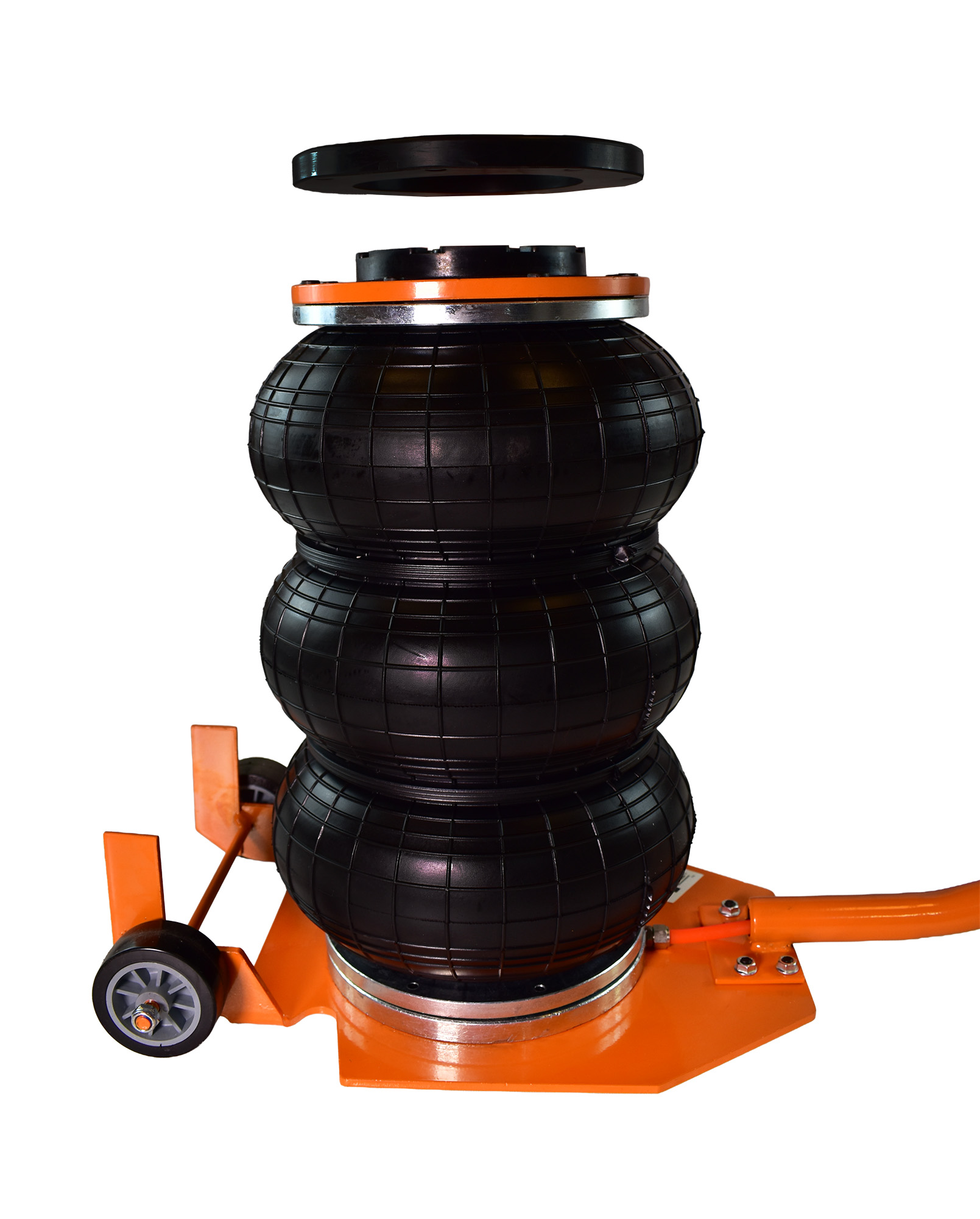 - Trójwarstwowy miech ze zbrojonego kauczuku: Serce podnośnika. Niezwykle odporny na pękanie i ścieranie, gwarantuje płynną pracę i utrzymanie ciśnienia przez długi czas.