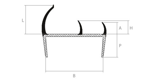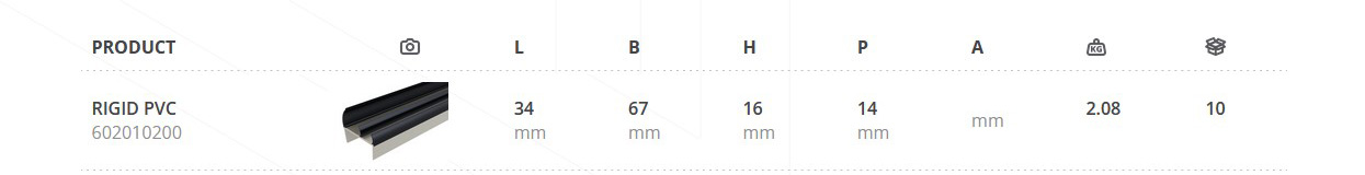- Uszczelka PVC/gumowa do zabudów chłodni L=34 mm, B=67 mm, H=16 mm, P=14 mm