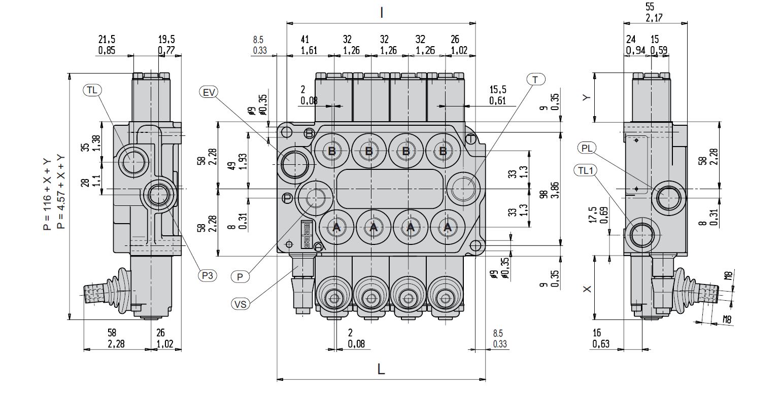 Dostępne w naszej ofercie rozdzielacze hydrauliczne SALAMI VDM6 to 2-sekcyjna konstrukcja monoblokowa przeznaczona do zastosowań w profesjonalnych układach hydrauliki siłowej. Służy do sterowania kierunkiem przepływu cieczy o maksymalnej prędkości 60 l/min i ciśnieniu roboczym rzędu 350 barów. Ich masa własna wynosi 4,5 kg, natomiast rozstaw sekcji jest równy 32 mm.