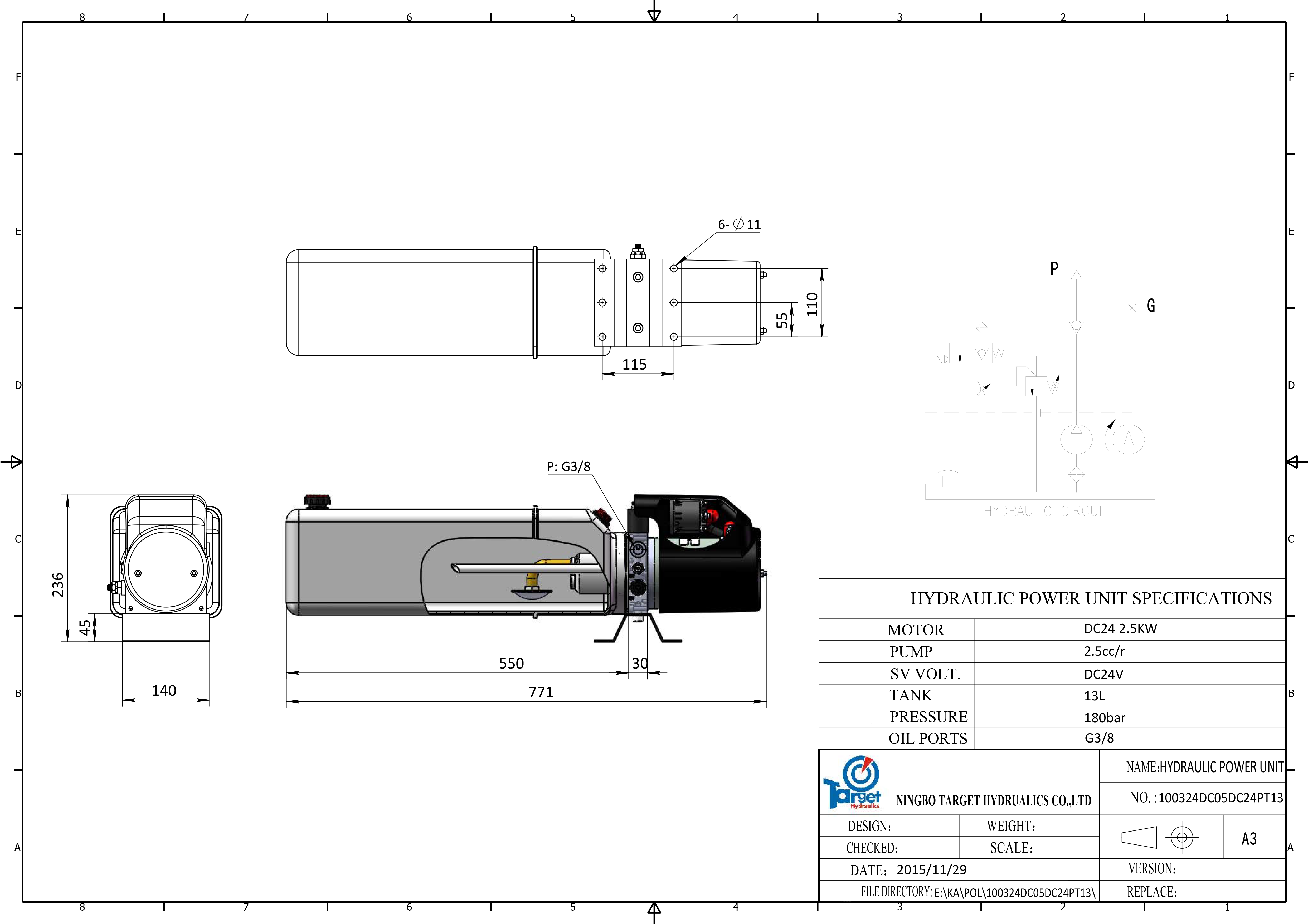 • Zasilacz hydrauliczny 24 V, wersja ze zbiornikiem 13 litrowym