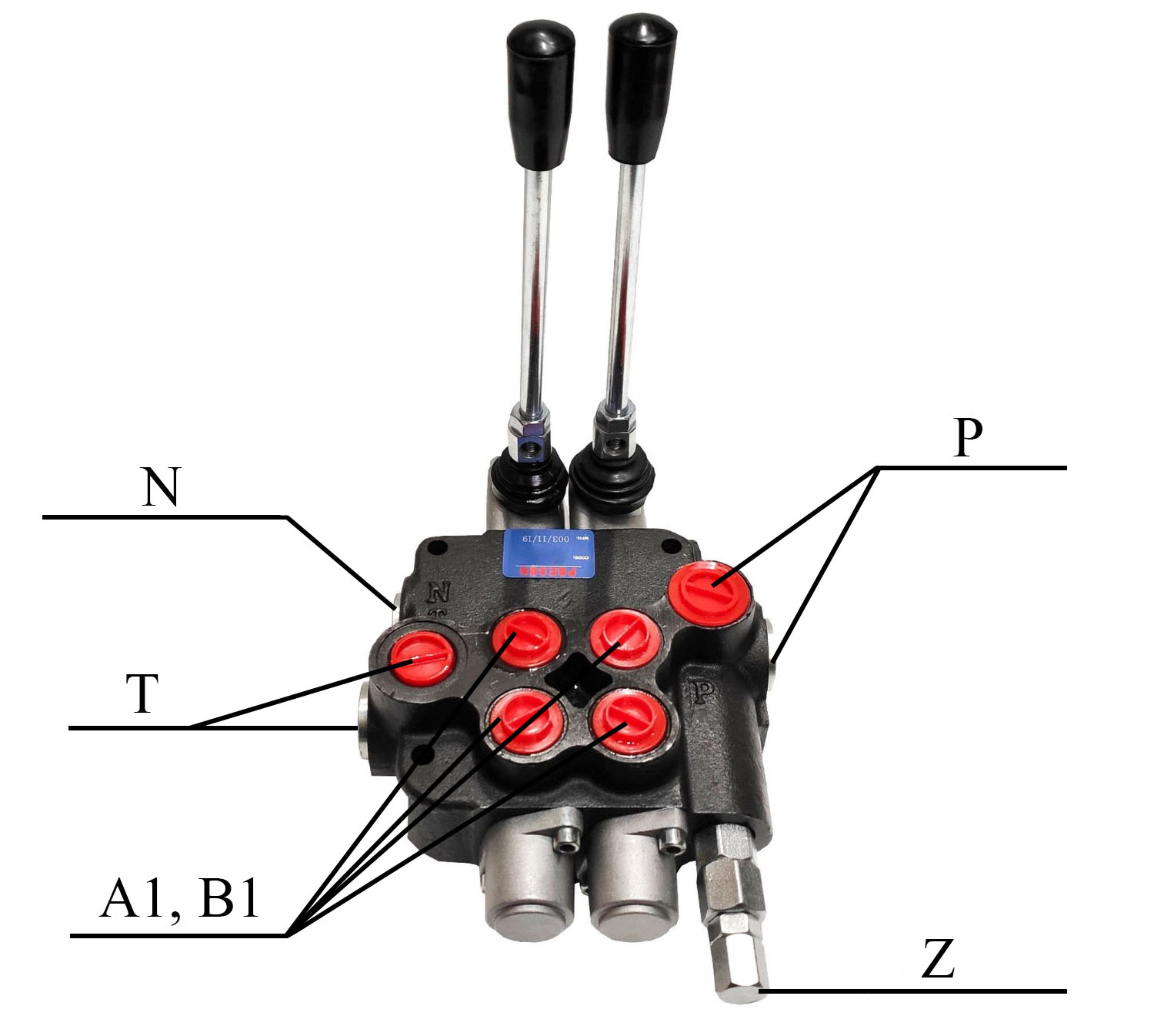 Zasilanie z pompy (P): Gwint wewnętrzny BSP 3/4''. Powrót do zbiornika (T): Gwint wewnętrzny BSP 3/4''. Wyjścia na sekcje (A, B): Gwint wewnętrzny BSP 1/2'' (wszystkie 5 sekcji) Podłączenie szeregowe (N): Gwint wewnętrzny BSP 3/4''. Upewnij się, że wszystkie połączenia są szczelne i solidnie dokręcone, aby zapobiec wyciekom oleju i stratom ciśnienia w układzie. - Montaż szeregowy: Ten model rozdzielacza jest zaprojektowany do szeregowego łączenia z innymi rozdzielaczami. W tym celu należy zastosować specjalną śrubę ciśnieniową, którą montuje się w porcie "N". Takie rozwiązanie pozwala na elastyczne rozbudowywanie układu hydraulicznego w zależności od potrzeb. Pamiętaj, aby dobrać odpowiednią śrubę dostępną w naszej ofercie.