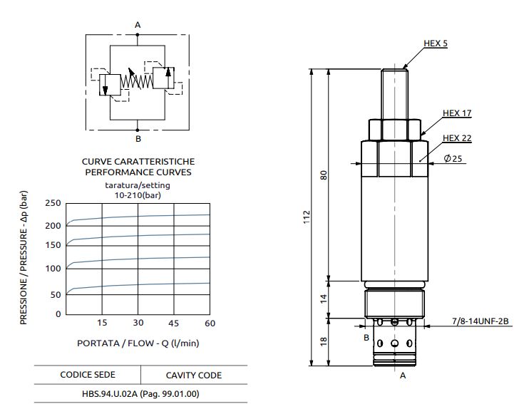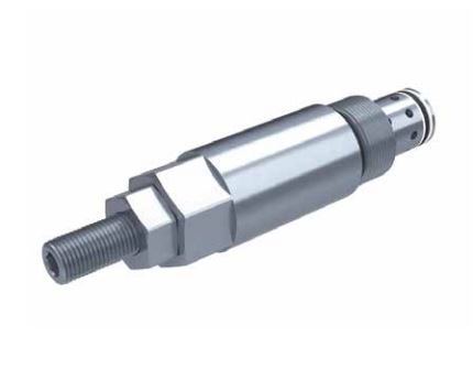 Podwójny krzyżowy zawór nadmiarowy. Maksymalna różnica między dwoma kierunkami: 15 bar. Ciśnienie wsteczne należy uwzględnić w wartości nastawy.